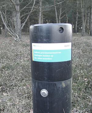 Over het hele land zijn honderden van zulke meetpunten. Dit is peilbuis nr B32A0023 die staat op de Bussumerheide.