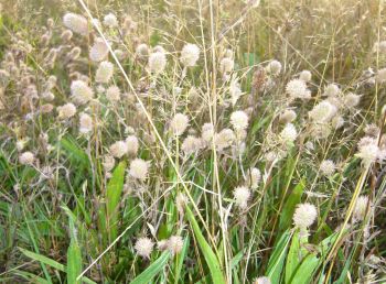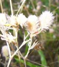 Het hazenpootje bloeit van juli tot de herfst met witachtige donzige bloemen.