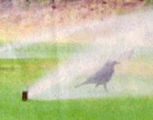 Luidruchtige kraaien (vast ook Karel!) zijn vaste bezoekers van golfbaan Spandersbosch. Brutaal ook, want ze weten zelfs de ritsen van golftassen open te maken, op zoek naar brood. De vindingrijke vogels vermaken zich ook prima tijdens de aanhoudende warmte. Wanneer de sproeiers aangaan nemen ze graag een verkoelend bad.