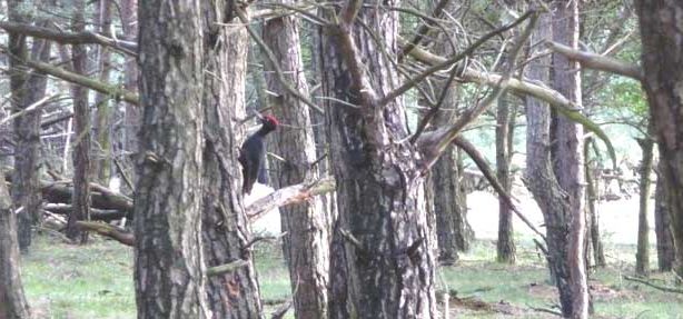 door zijn luide hakwerk.Met wat geluk kun je hem dan lokaliseren.