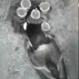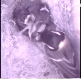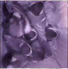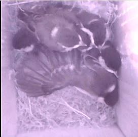 5 Mei Ze zijn al goed gegroeid. Je kunt ze horen piepen. Het is nog steeds koud. Dat betekent dat er weinig rups te vinden is. Zo te zien is er een jong van de 7 verdwenen. |