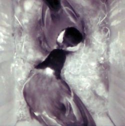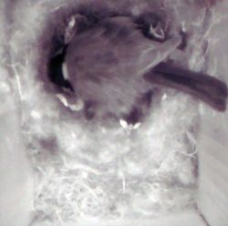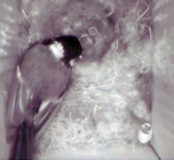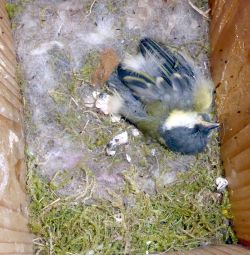 Om 7 uur zijn er nog 5. Om 7:12 zijn ze vertokken. Een jong blijkt dood te zijn, de kleinste. In spitkoolmezen heb de vidio van de laatst vertrekkende opgenomen. |
